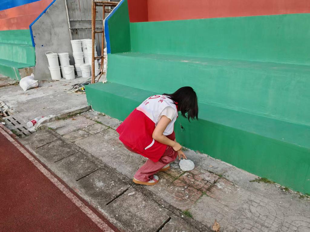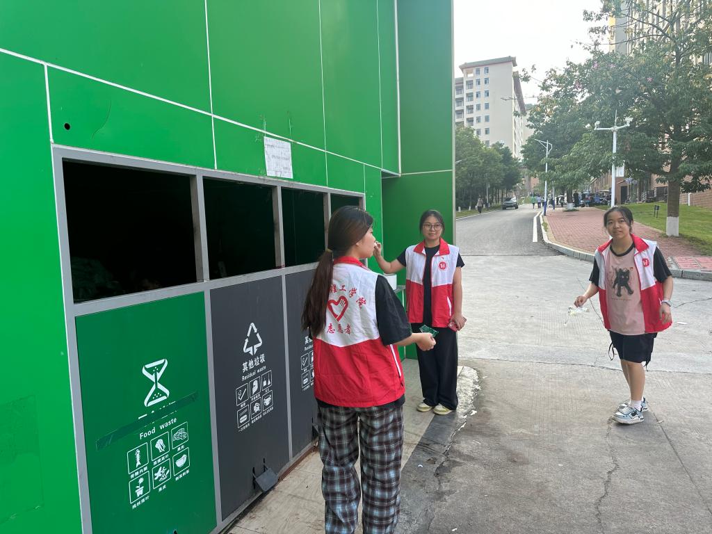“先除尘、后擦拭”,他们清洁宣传栏玻璃及高频接触设施,确保无明显污渍;过程中,各小组既各司其职又相互协作,如协助转运垃圾、共享清洁工具,在规定时间内均完成既定任务,提前进入成果检视阶段。