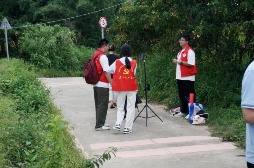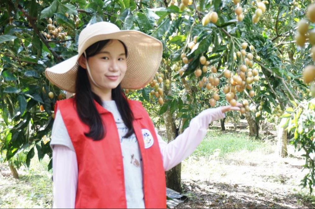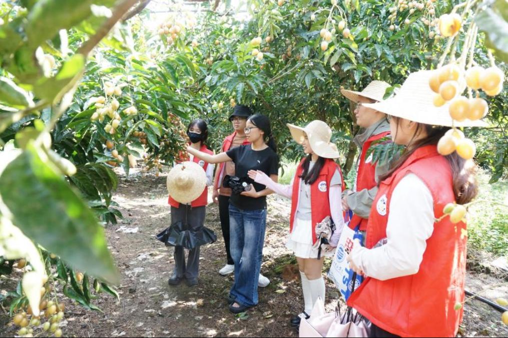7月13日,在钱东镇乡村振兴志愿者黄钿钿的带领下,团队首站来到礼堂村。村委干部陈同志热情接待并详细介绍了黄皮果产业发展现状。通过实地走访果园、与农户深入交流,队员们全面掌握了黄皮果从种植到销售的全链条信息。在此基础上,实践团拍摄了黄皮果中英文推介视频。队长吴禅玲担纲主讲,将镜头对准这片充满希望的果园,结合实地调研的所见所闻,用清晰流畅的语言介绍礼堂村黄皮果的特色、品质、营养价值及背后的乡村故事,为乡村特色农产品“走出去”贡献力量。