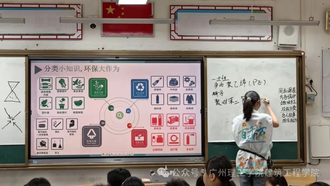 第三节垃圾分类知识竞赛,黄家丽通过抢答、分组对抗等形式,考查学生们对垃圾分类知识的掌握程度。竞赛题目紧密结合生活实际,从常见垃圾的分类到垃圾分类的意义,学生们积极参与,在激烈又欢乐的比拼中加深了对环保知识的理解,树立了绿色生活理念。
