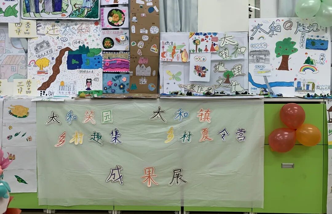 “太和‘笑’园,乡村‘趣’集”乡村夏令营成果展集中展示孩子们在夏令营期间的丰硕成果。通过主题课程、兴趣课程和集体活动的开展,孩子们收获了知识、增长了技能。成果展中,展示了孩子们充满创意的绘画作品,展现出他们丰富的想象力。