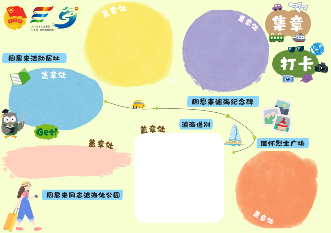 7月20日,“陆”泽情韵,“丰”盈岭南实践团圆满完成此次调研任务。成员依托周恩来活动居址和周恩来渡海公园,精心打造了一系列文创精品:红旅手绘地图集章卡,细腻勾勒历史脉络;景点专属印章,巧妙融合革命故事与现代审美,让红色记忆跃然于生活细微处,既传承了先辈精神,又赋予了红色文化新的时代活力与生命力。