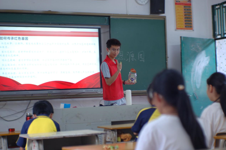 为激发当地同学爱国情怀与责任感,志愿者创新宣传方式、丰富内容,让红色文化生根发芽。他们讲述中国革命历史及龙颈镇革命历程、禁毒英雄吴桂忠等故事。同学们敬仰先烈,立志学习其品质贡献力量。支教中,志愿者参与红色知识宣传,为培养全面发展的接班人献力。