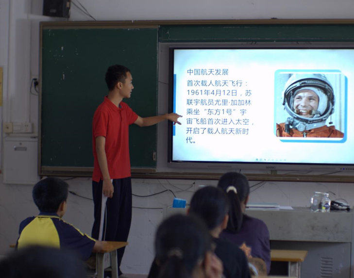 为了响应党“科技强国”的号召,激发学生们对科学的兴趣,支教团成员向学生们介绍了航天科技的起源与发展。在课程中,支教团成员特别强调了几个重要的历史时刻,如苏联发射世界上第一颗人造卫星“斯普特尼克1号”,美国阿波罗11号宇航员成功登月,以及国际空间站的建设与运营等。通过这些经典案例的讲解,让学生们深刻理解了航天技术对国家实力、科技进步乃至人类文明发展的重要意义。
