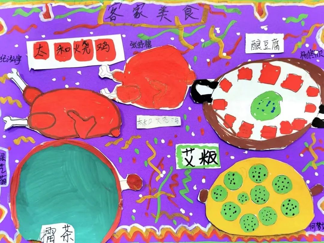 从手绘“白山村”地图到“太和镇”手抄报,从红色诗歌朗诵比赛到客家歌谣表演,从绘制客家美食菜单到太和非遗手工的制作,每一件作品都凝聚了孩子们的创意与努力,展现了太和镇独特的文化魅力。