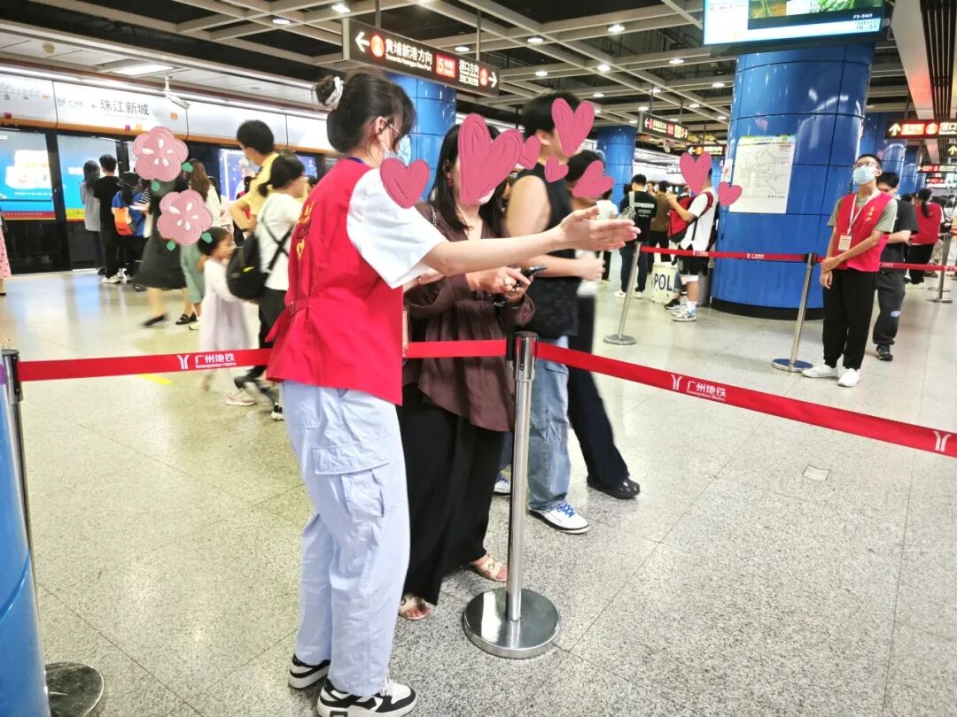 国庆佳节,广州理工学院地铁志愿者们以助人为笔,责任为墨书写着地铁安全的新篇章。值班志愿者们在各自的岗位上为乘客们的安全保驾护航。有的志愿者在站台保证乘客候车的秩序,有的在重点岗位疏导客流,有的则穿梭于熙熙攘攘的人群中,及时为乘客提供指引和帮助。而无论是身处哪个岗位他们都耐心解答乘客疑问,为乘客提供最优换乘路径,帮助地铁工作人员顺利完成工作,全力保障了市民乘客的出行安全与顺畅,为国庆假期增添一份安心与温馨。