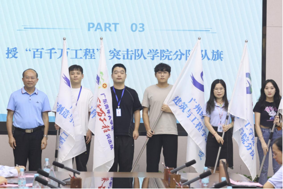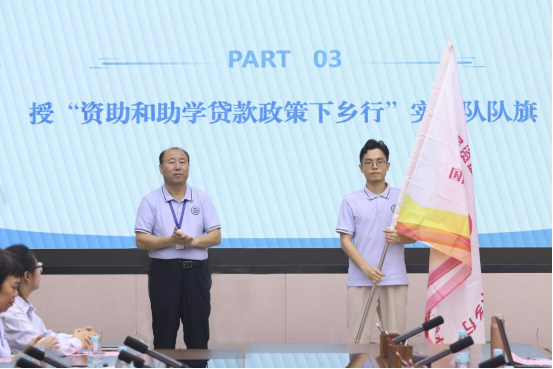 会上,黄圣诚书记与肖海副校长分别向“百千万工程”突击队学院分队、“资助和助学贷款政策下乡行”实践队授旗。校团委就2024年我校暑期社会实践活动的整体情况和部署安排进行了介绍,明确了社会实践的目标、任务与要求。最后,“百千万工程”突击队志愿者代表庄严宣誓。志愿者们表示,将在实践中践行志愿精神,尽己所能,不计报酬,帮助他人,服务社会,践行志愿精神,为“百千万工程”贡献力量!