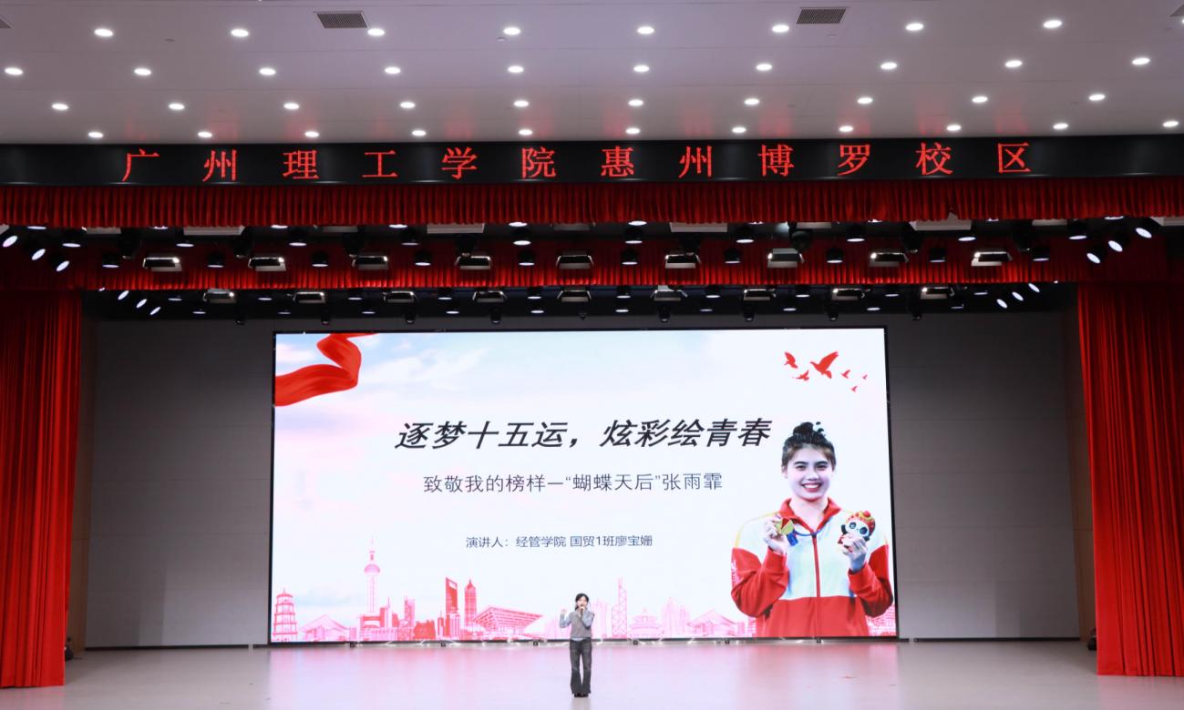 2025年11月19号晚,为弘扬体育精神、凝聚青春力量,以“逐梦十五运,炫彩绘青春”为主题的演讲比赛决赛在惠州校区大礼堂隆重举行。学校副校长肖海、惠州校区管委会副主任钟任鹏、保卫处处长助理布树凯应邀出席,评委老师分别是党委宣传部部长助理梁宇铭、惠州校区党政管理办公室郑馨茹老师、惠州校区学管办王明杰老师和朱丽球老师、以及惠州校区后勤办蔡伊咏老师。场上,选手们一路上披荆斩棘,终于在此相聚,他们以铿锵话语为笔,以炽热情感为墨,描绘着十五运盛会的壮阔蓝图,诉说着青春与梦想的滚烫故事。场下,观众们始终保持着高涨的热情,他们的专注倾听、真诚喝彩与深切共鸣,共同勾勒出青春昂扬、凝心聚力的现场画卷,为比赛增添了浓厚的感染力。