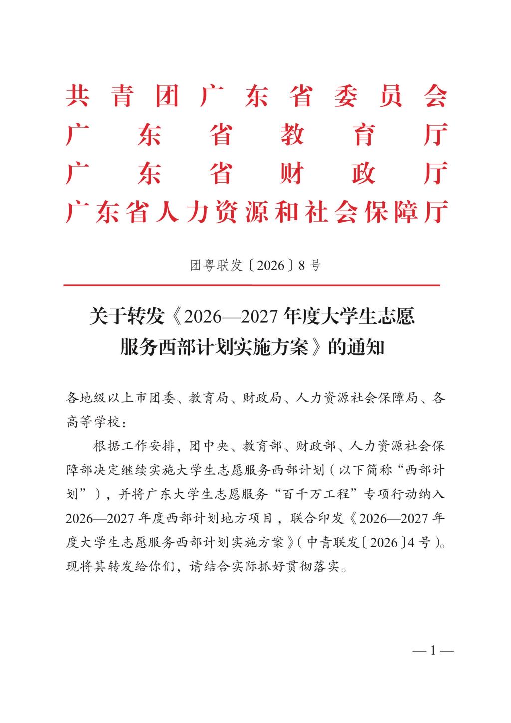 【团粤联发〔2026〕8号】关于转发《2026-2027年度大学生志愿服务西部计划实施方案》的通知.pdf